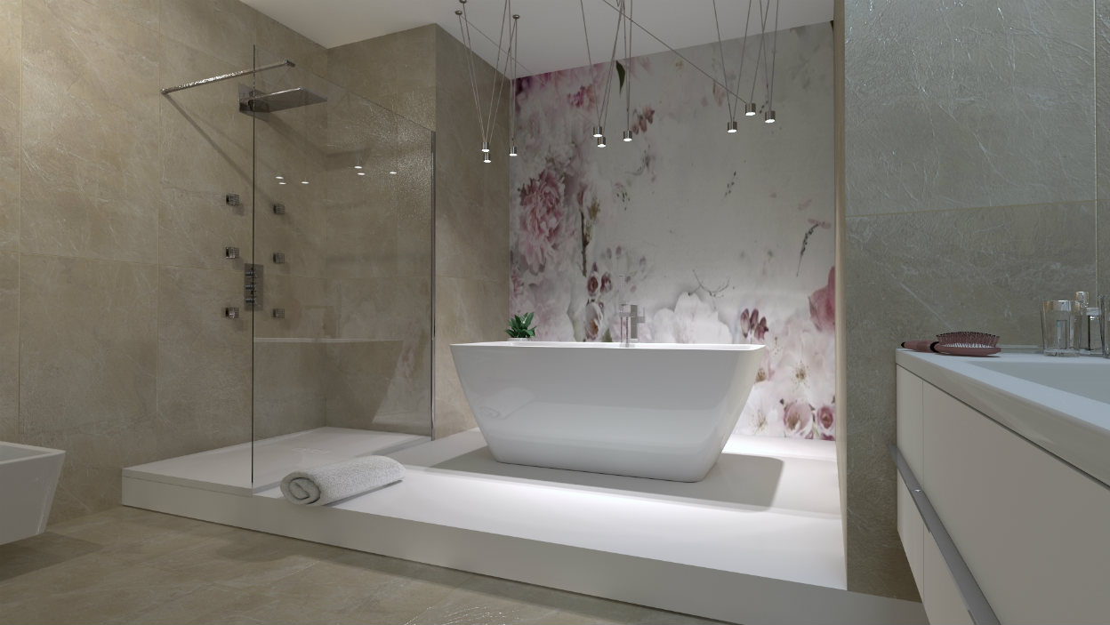 Galeria Zdjec Zdjecie Kwiaty Na Tapecie W Lazience Z Marmurem