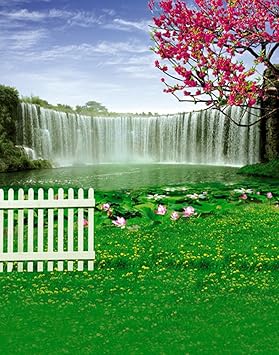 Amazon Com Paisaje Arbol De Flores Color Rosa Cascada Zacate