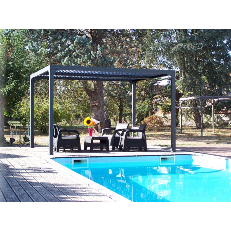Pergola Bioclimatique Lames Orientables En Aluminium 7 2 M Anthracite Habrita