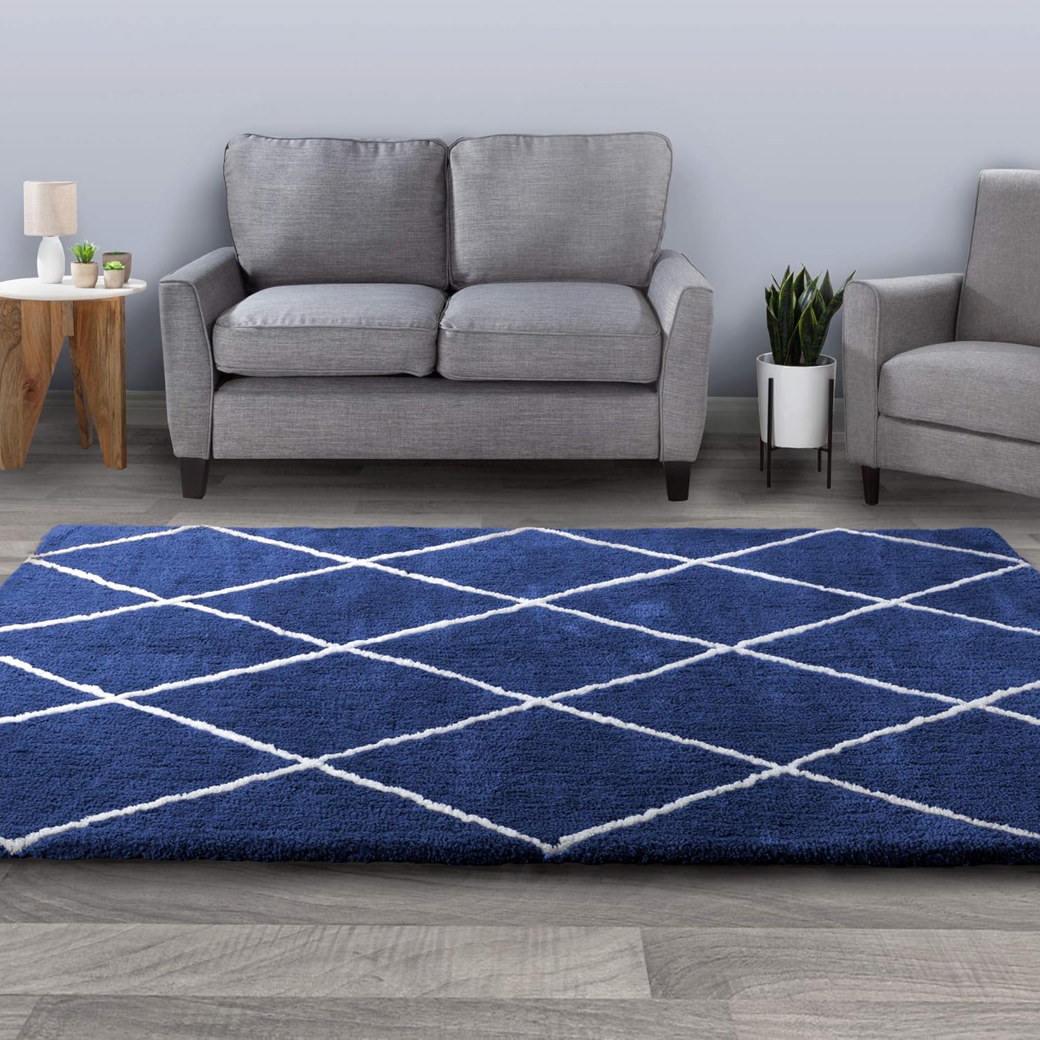 Amazon Com Lavish Home Navy Ivory Diamond Shag Area Rug Plush