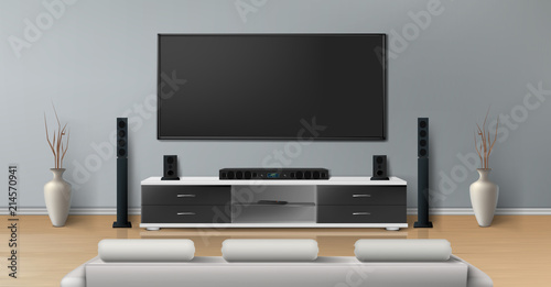 Vector Realistic Mockup Of Living Room With Big Plasma Tv On Flat