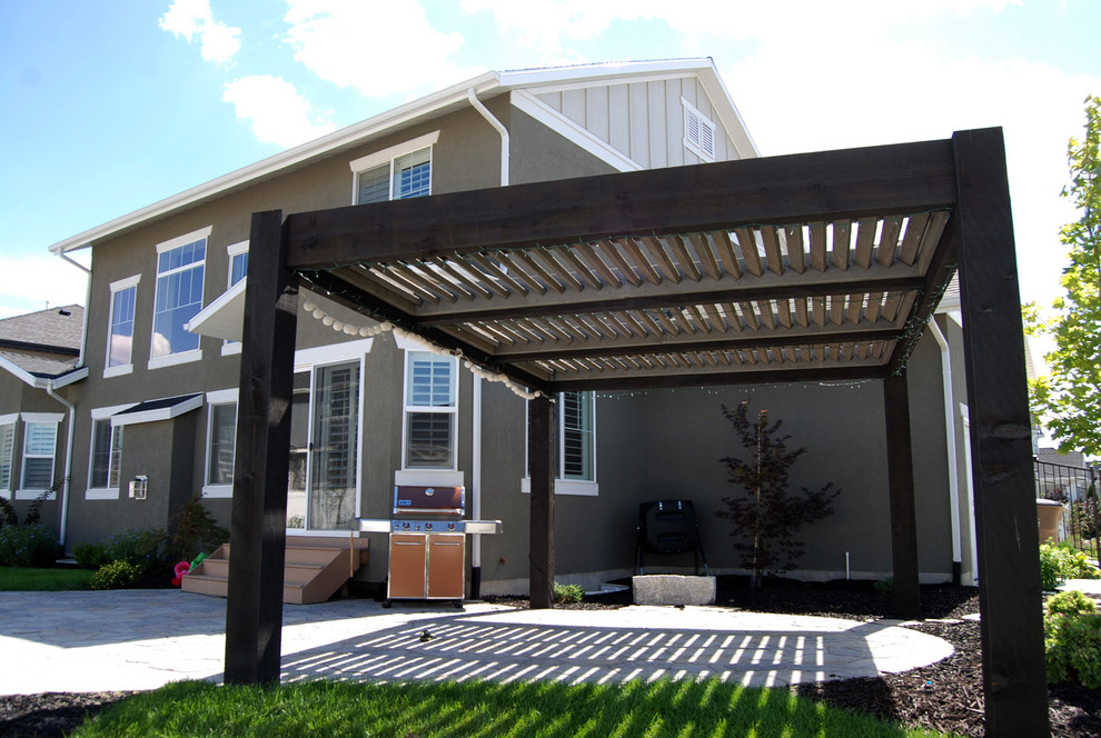 Family Size Timber Louvered Roof Pergola Contemporary Style