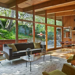 Midcentury modern living rooms. Rug hi where can i find that rug. Example of a trendy living room design in salt lake city houzz. West vancouver 1960 s lewis post beam house renovation.