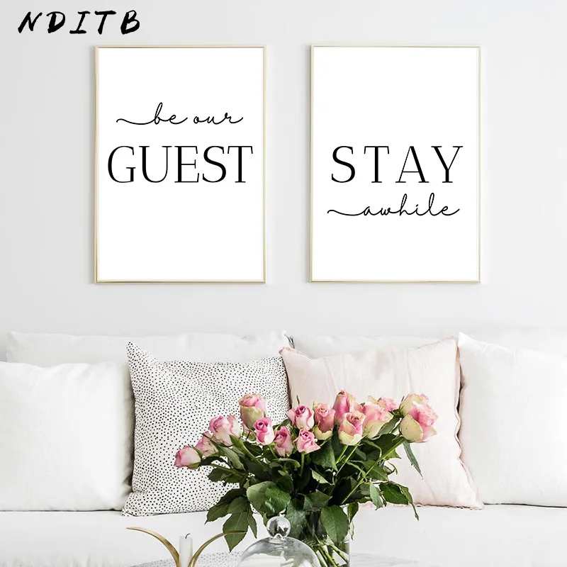 Stay Awhile Wall Art Picture Simple Quotes Poster Black White