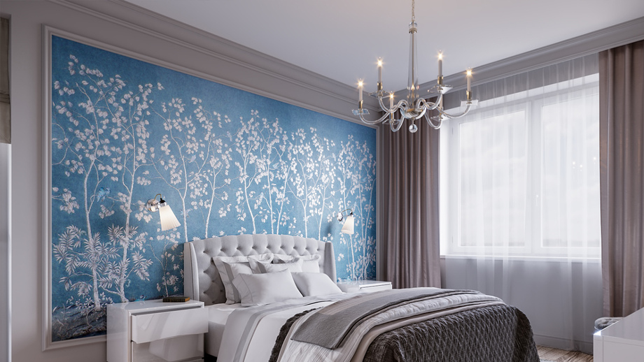 Niebieska Tapeta W Sypialni