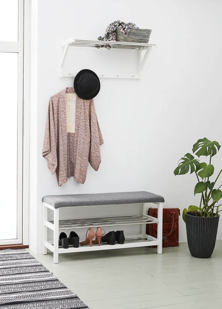 Bancă Egeskov Cu Raft Pantofi Metal Alb Jysk Skohylla