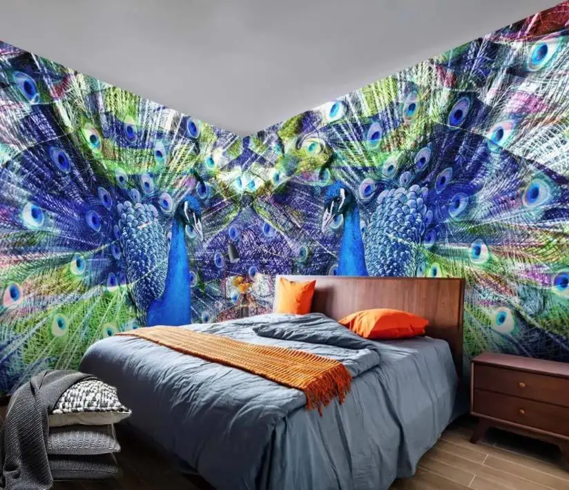 Custom 3d Home Improvement Large Huge Modern New Chinese Blue Peacock Whole House Background Wall Wallpaper 5d Wallpapers Aliexpress